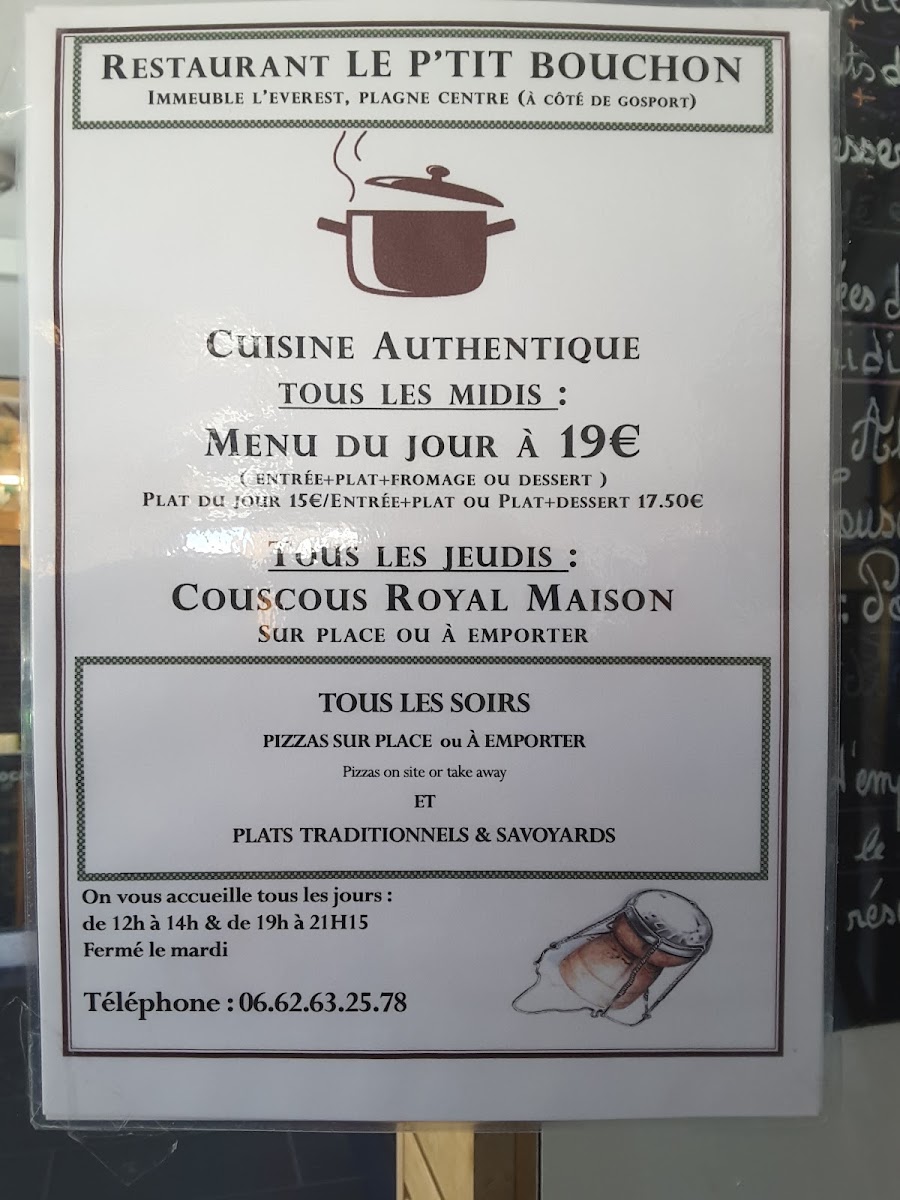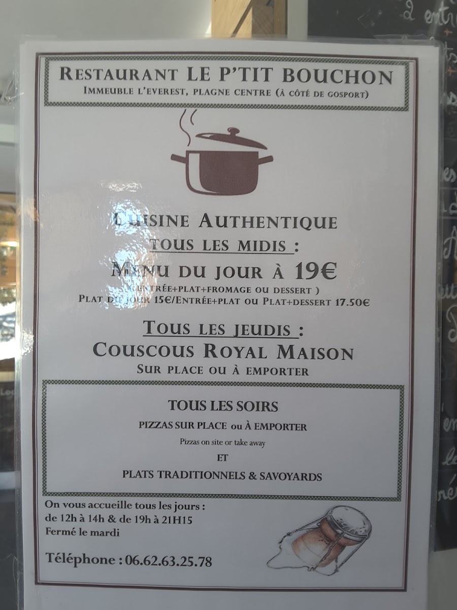 Welcome to Le P'tit bouchon La Plagne Centre, a charming restaurant nestled in the heart of La Plagne Tarentaise. This hidden gem promises an authentic culinary experience, offering a delightful mix of traditional French cuisine alongside diverse options like pizza and Thai dishes. The menu features a fantastic 3-course lunch for just €20, perfect for those seeking quality at a great price. Diners rave about dishes like the surprisingly exquisite prawn tagliatelle, showcasing the chef's culinary prowess and attention to detail. The cozy ambiance, run by a dedicated couple, enhances the overall dining experience. With reviews praising the varied and well-executed menu, it’s no wonder that locals flock here for takeaway as well. Be sure to book in advance, as this intimate space fills up quickly due to its reputation. Le P'tit bouchon is truly a standout destination for those who appreciate good food and friendly service.